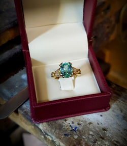 ![]() 091304-14kt-yg Green Montana Sapphire .40ctw Diamond Halo Larger sapphires from Montana are hard to find with such color & carity. | ![]() 091305-14kt-yg Opal We used a wide frame setting for this beautiful opal. | ![]() 091306-14kt-yg 3ct Green Spinel .40ctw Diamonds Unusual color for a green Spinel. | ![]() 083040-14k-yg 1.66ct Center Stone 2.70ctw Diamonds |